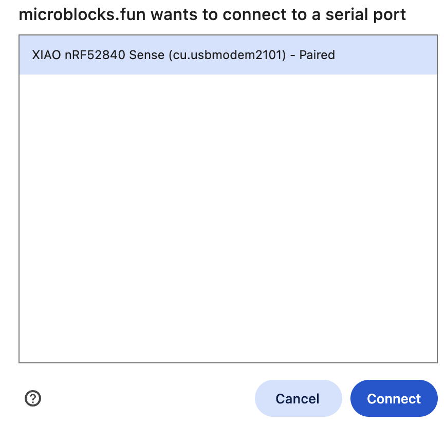 Run the MicroBlocks editor in a Chrome or Edge browser. Click the connect (plug icon) button:
